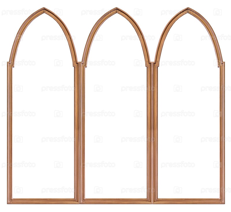 Тройная готическая деревянная рама (триптих) для картин, зеркал или фотографий, изолированных на белом фоне