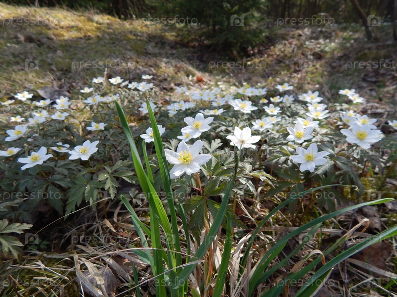 Луг белых подснежников в весеннем лесу
