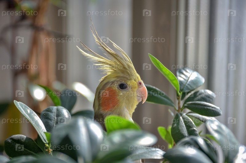 Голова попугая в листьях
