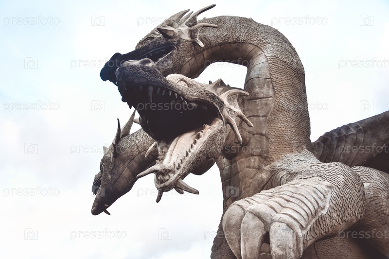 Липецкая область / Россия - 06 ноября 2021 г.: скульптура Змея-Горыныча, парк Кудыкина гора, огнедышащий дракон