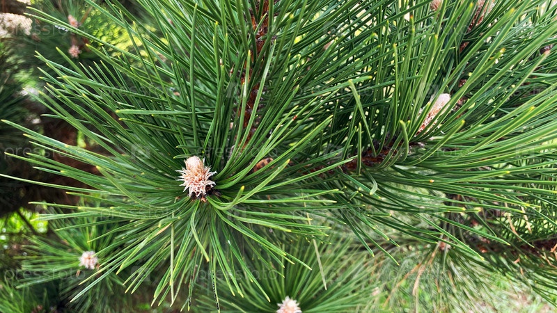 Ветка сосны крупным планом, хвоя ели и молодые приросты