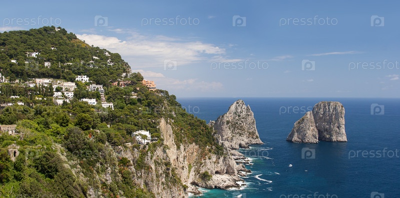 Панорама побережья острова Капри (Италия) с видом на грот «Grotta Albergo dei Marinai»