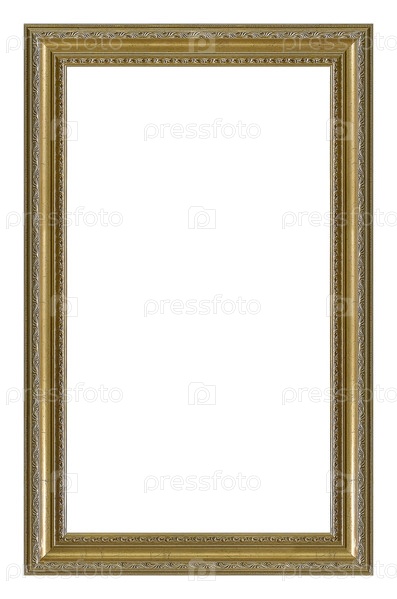 Золотая рама для картин, зеркал или фотографий на белом фоне