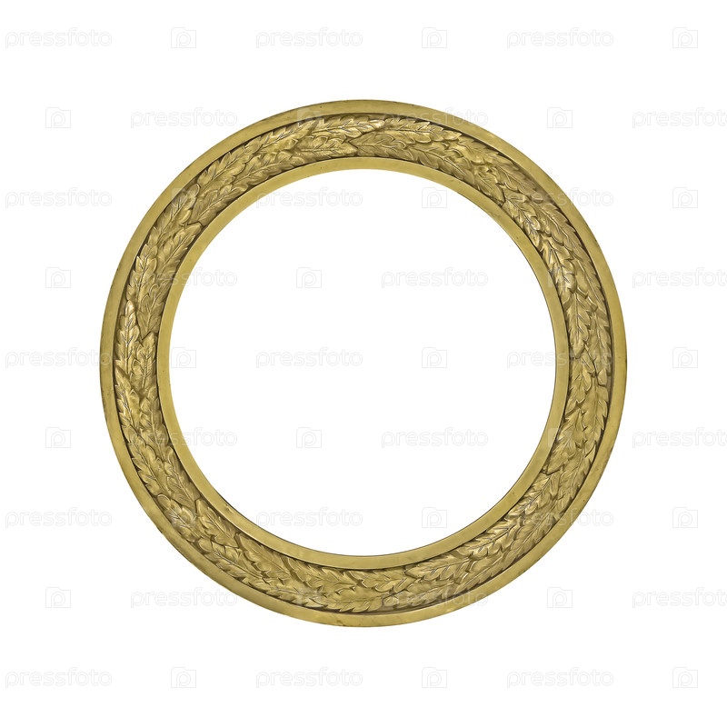 Золотая круглая рамка для картин, зеркал или фотографий на белом фоне