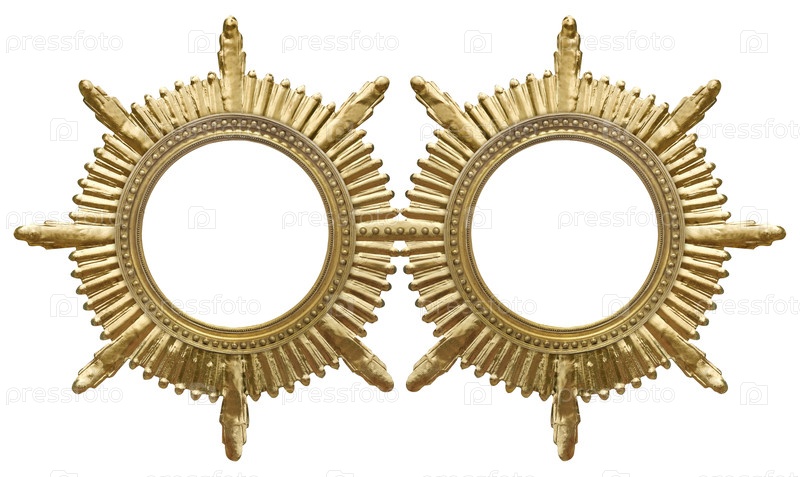 Золотая круглая рамка для картин, зеркал или фото, изолированных на белом фоне. Элемент дизайна с обтравочным контуром
