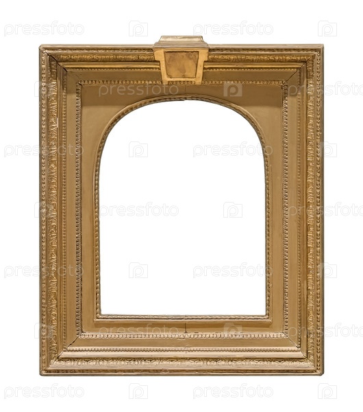 Золотая рамка для картин, зеркал или фото, изолированных на белом фоне. Элемент дизайна с обтравочным контуром