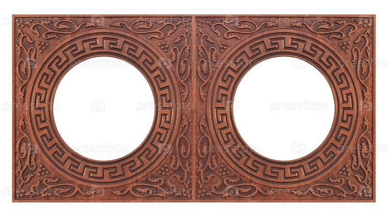 Двойная деревянная рама (диптих) для картин, зеркал или фотографий, изолированных на белом фоне. Элемент дизайна с обтравочным контуром