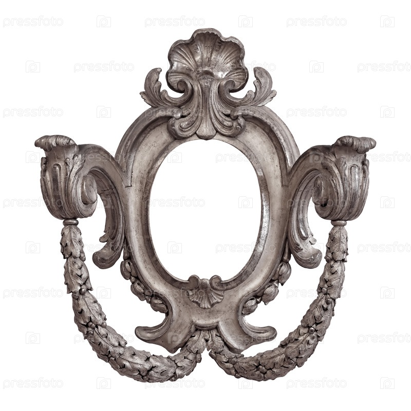 Серебряная овальная рамка для картин, зеркал или фотографий, изолированных на белом фоне. Элемент дизайна с обтравочным контуром
