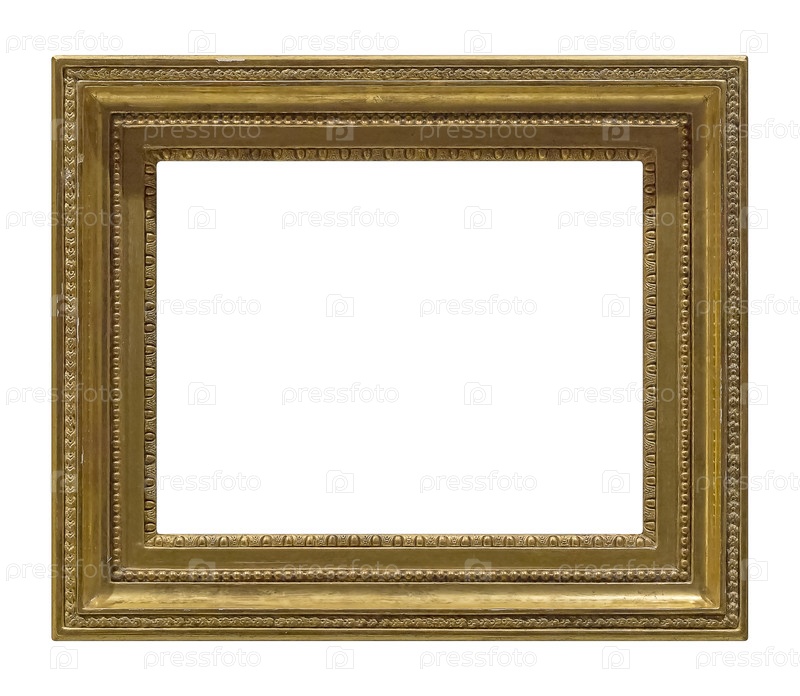 Золотая рамка для картин, зеркал или фото, изолированных на белом фоне. Элемент дизайна с обтравочным контуром
