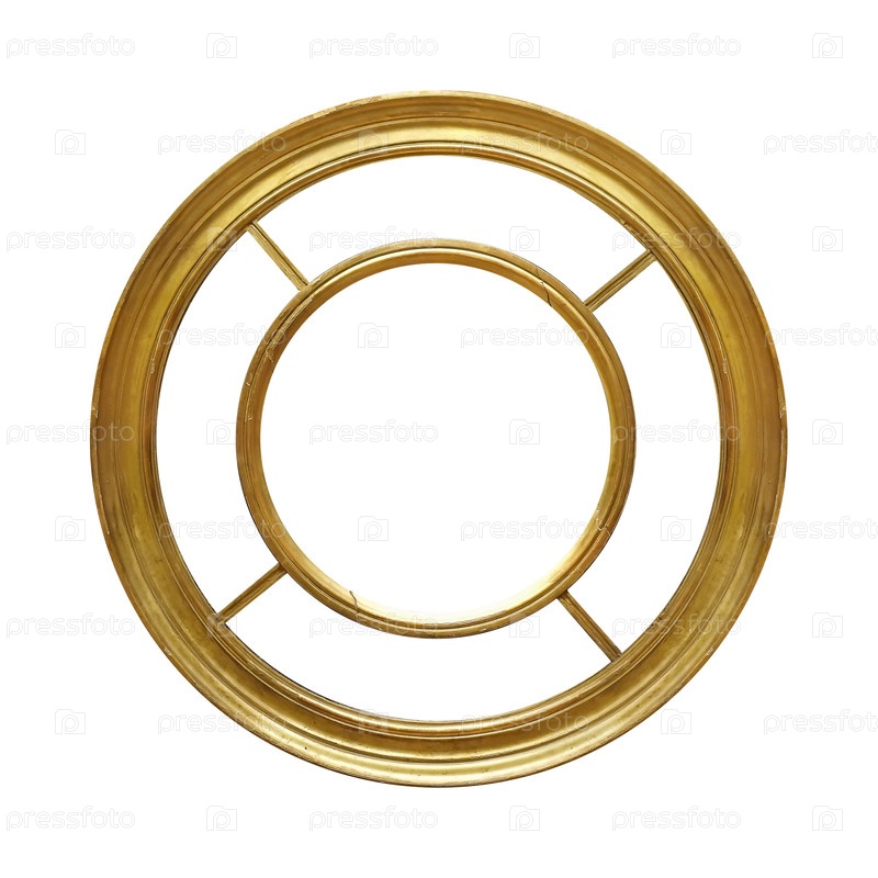 Золотая круглая рамка для картин, зеркал или фотографий на белом фоне