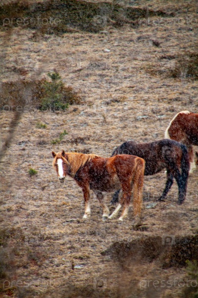 Пейзаж с лошадьми в горах
