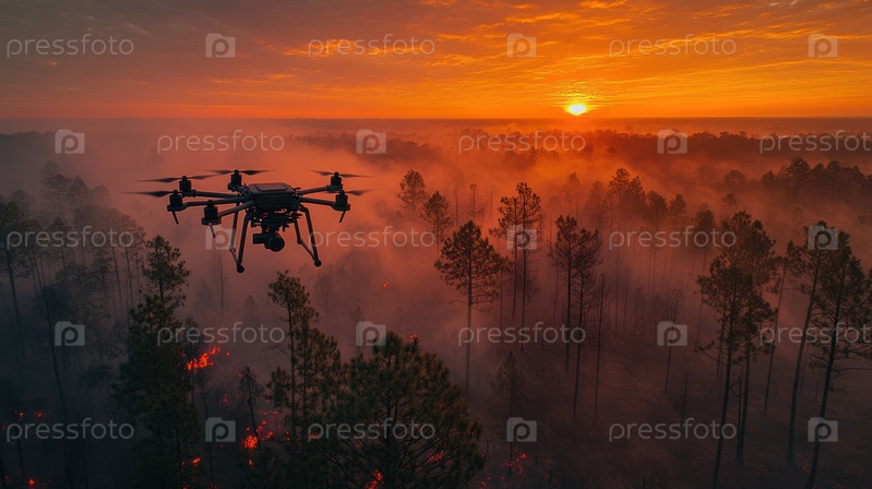 Беспилотный летательный аппарат для наблюдения за лесным пожаром на закате