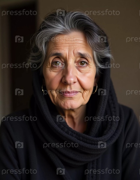 В уютной комнате в Газе пожилая женщина в простом черном шарфе демонстрирует безмятежное выражение лица, отражающее ее жизненный опыт и силу