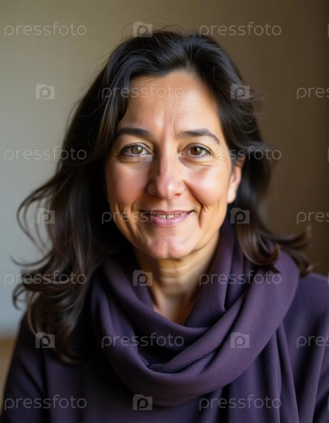 Захватывающий портрет женщины средних лет из Газы, излучающей тепло и силу. Ее нежная улыбка и выразительные глаза отражают богатую культуру и дух ее родины