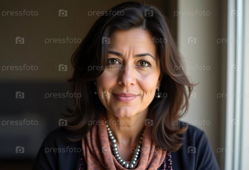 Женщина из Газы стоит грациозно, ее теплая улыбка излучает уверенность