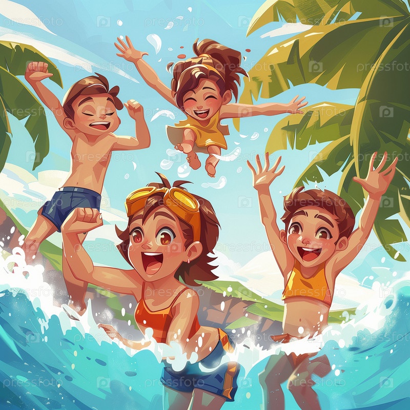 Летние пляжные командные игры в мультяшном стиле