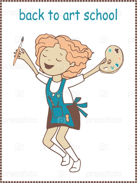 Веселая девочка художница нарисованная от руки