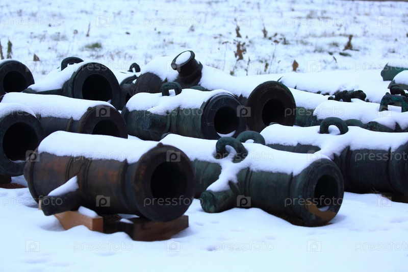 Старинные пушки, припорошенные снегом