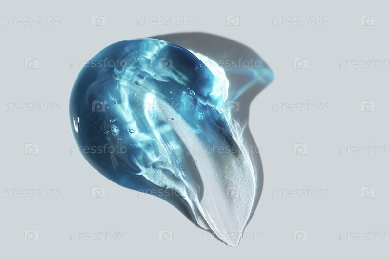 Чистый прозрачный косметический синий гель-мазок на белом фоне, текстура глицерина для ухода за кожей. вид сверху