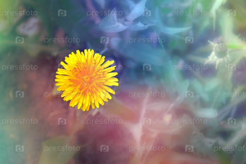 Весеннее утро, весенние цветы, красивый желтый одуванчик в зеленой траве