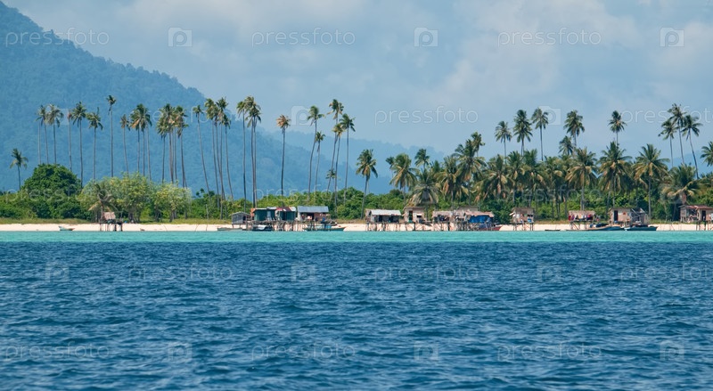 Малайзия. Кокосовые пальмы на многочисленных рифовых островах близ острова Борнео, недалеко от города Семпорна
