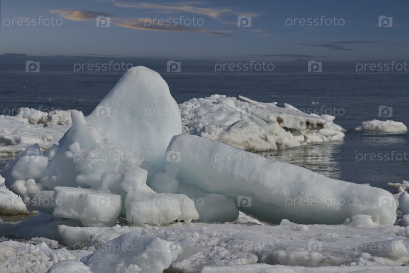Россия. Западное побережье острова Сахалин. Живописный последний лед в весеннем Охотском море