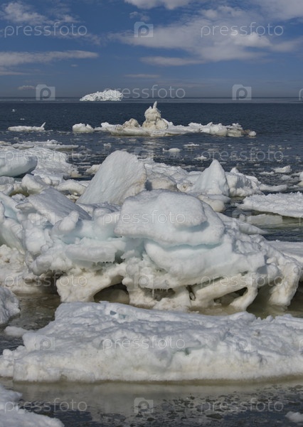 Россия. Западное побережье острова Сахалин. Живописный последний лед в весеннем Охотском море