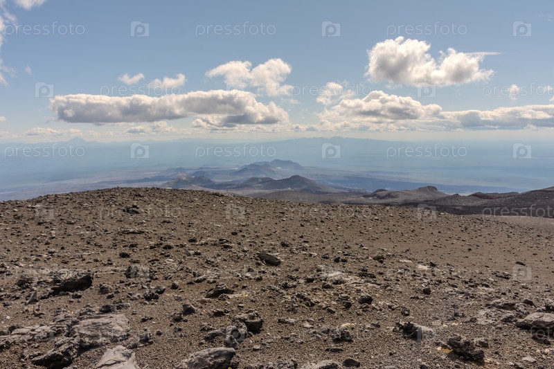 Лавовые поля с вулканом на заднем плане