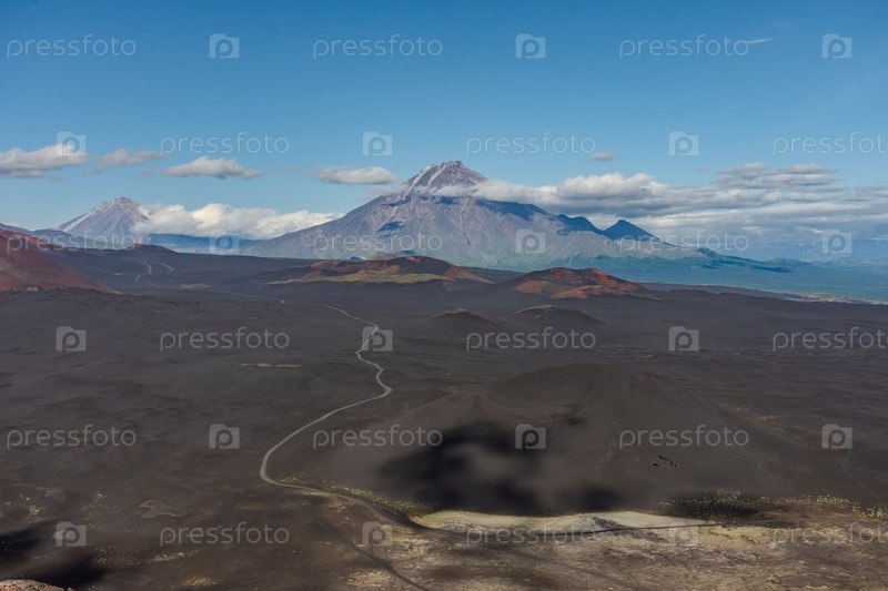 Шлаковые поля на фоне вулкана