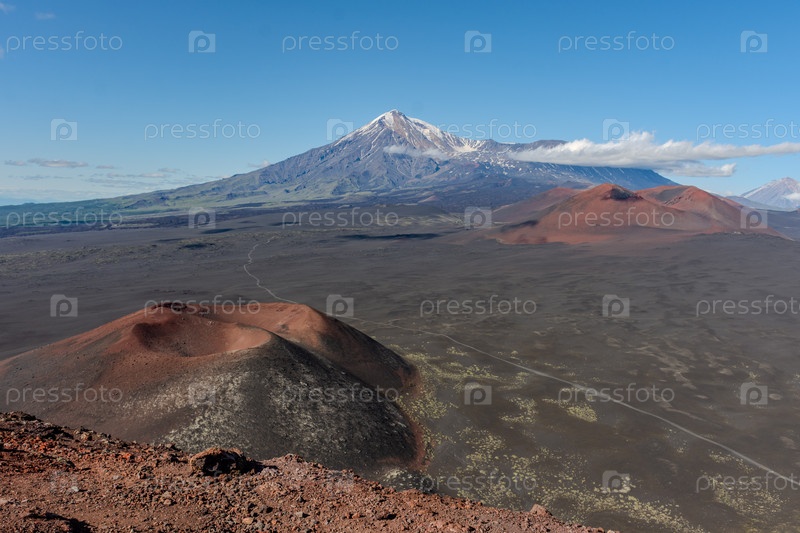 Шлаковые поля на фоне вулкана