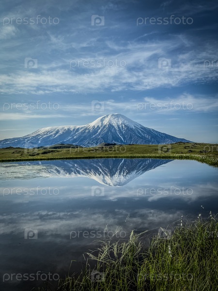 Вулкан отражается в воде