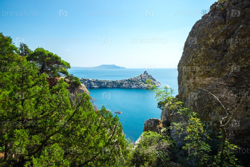 Живописный морской пейзаж с прекрасным видом на мыс Капчик и Черное море. Крымский полуостров. Россия