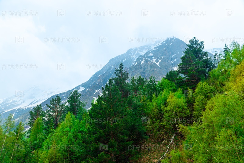 Суровый живописный горный пейзаж высоко в горах в плохую погоду. Кавказ