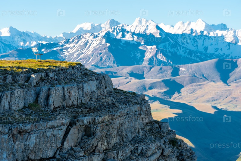Живописный вид на скалистый утес на фоне Северо-Кавказского хребта в Приэльбрусье
