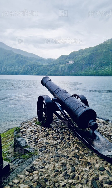 пушка на фоне гор