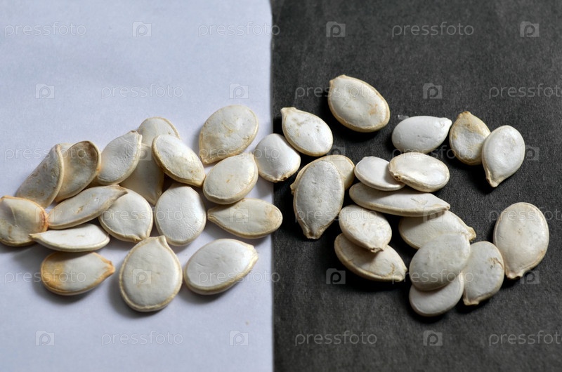 Тыквенные семечки на черно-белом фоне