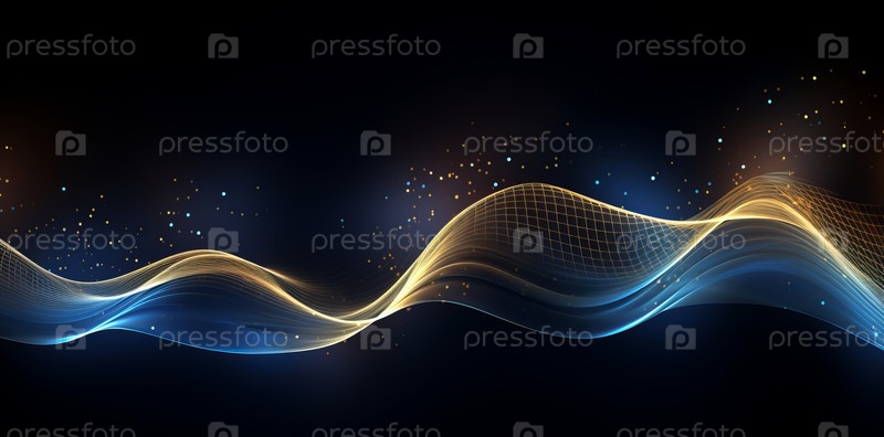 Абстрактные синие и желтые волны на темном фоне и огни боке