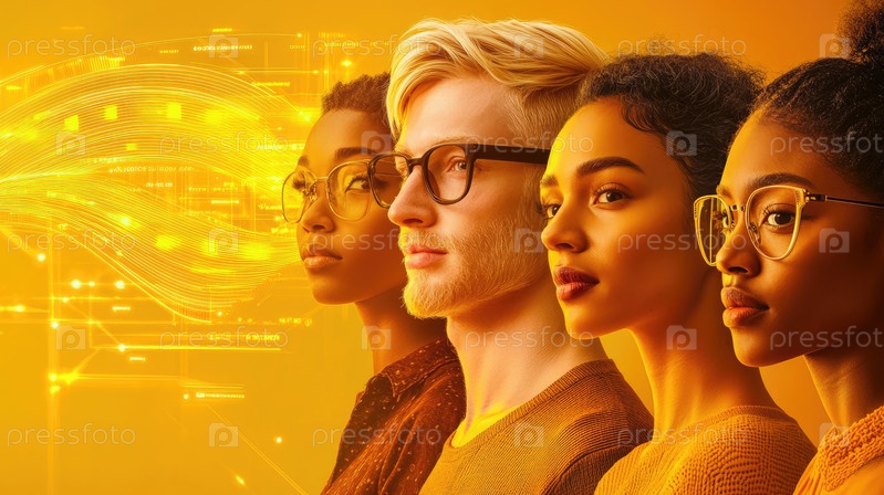 Люди, объединенные сетью, символизируют будущее человеческого взаимодействия и многообразия посредством передовых технологий