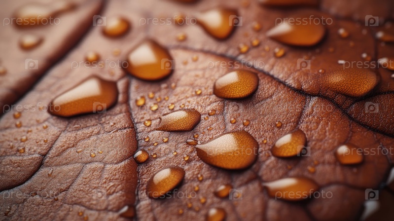 Капли воды на сухом коричневом листе макро