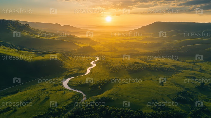 Закат над извилистой рекой в Грин-Вэлли