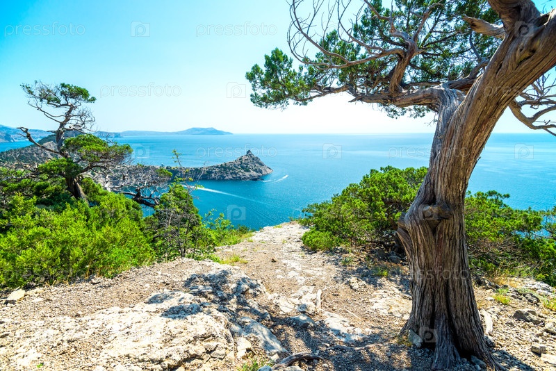 Живописный морской пейзаж с прекрасным видом на мыс Капчик и Черное море. Крымский полуостров. Россия