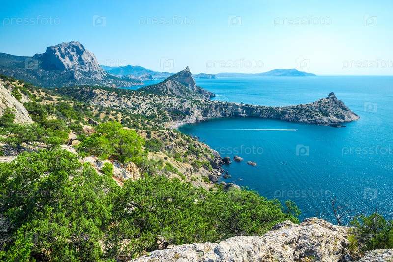 Живописный морской пейзаж с прекрасным видом на мыс Капчик и Черное море. Крымский полуостров. Россия