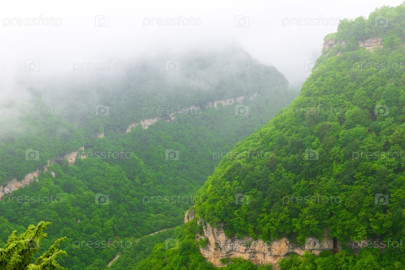 Живописный вид на Тысильский каньон в плохую погоду. Кабардино-Балкария. Россия