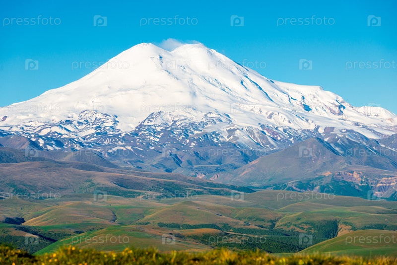 Живописный вид на белую вершину Эльбруса. Вид с плато Канжол