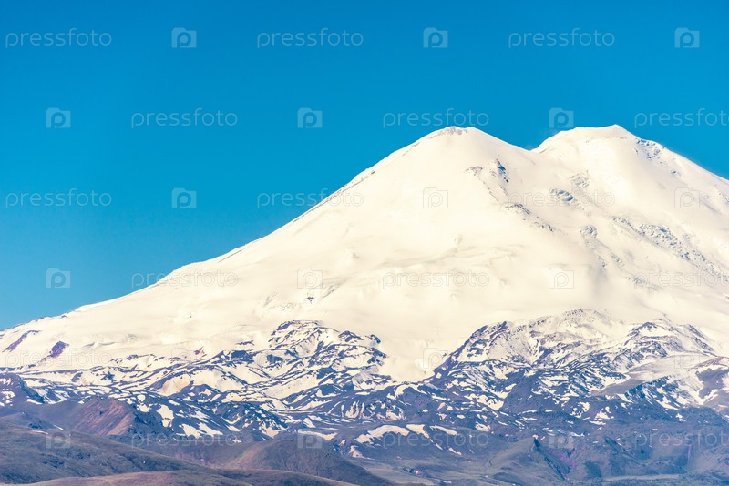 Живописный вид на белую вершину Эльбруса. Вид с плато Канжол