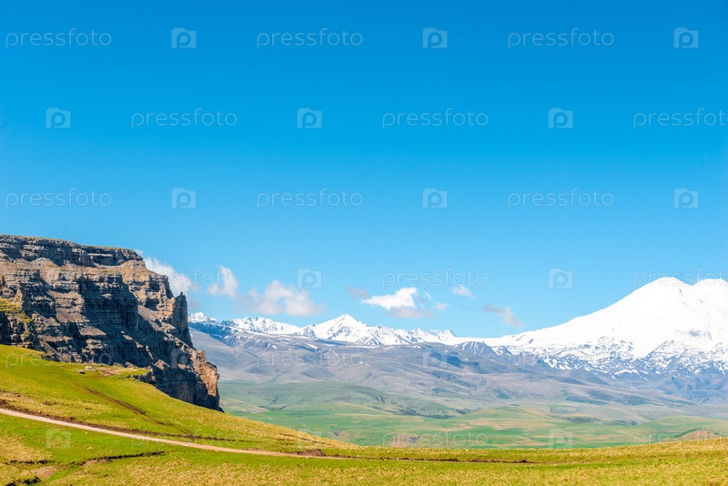 Живописный вид на скалистый утес на фоне Северо-Кавказского хребта в Приэльбрусье