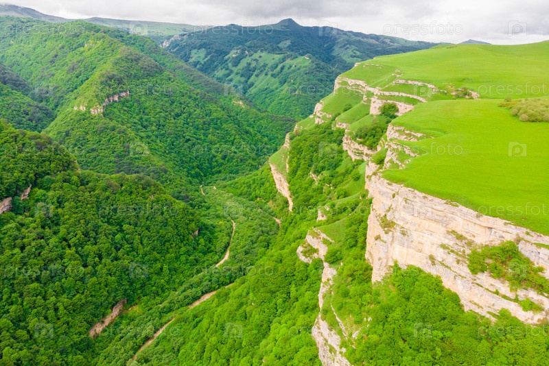 Красивые крутые скалистые стены глубокого зеленого каньона