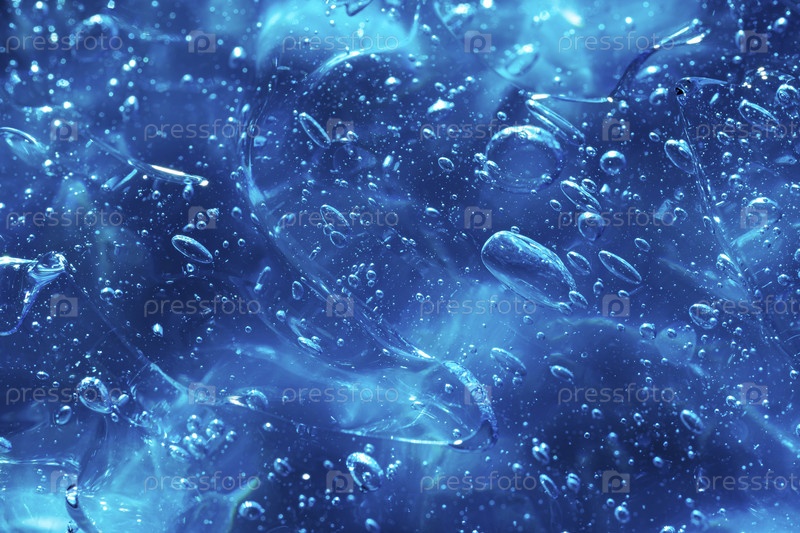 Косметический гель или сыворотка желе красоты текстура фон. Прозрачный уход за кожей коллагеновый продукт фон. Антибактериальный дезинфицирующее средство или жидкий водный увлажняющий тонер размазанный мазок, синий фон