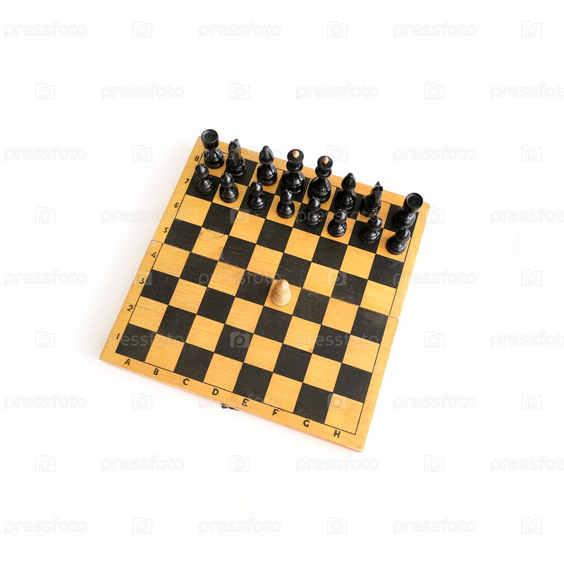 Шахматы на деревянной доске, изолированные на белом фоне