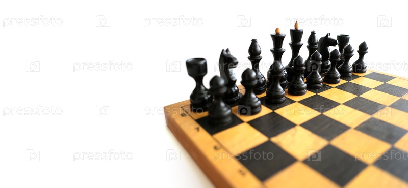 Шахматы на деревянной доске, изолированные на белом фоне